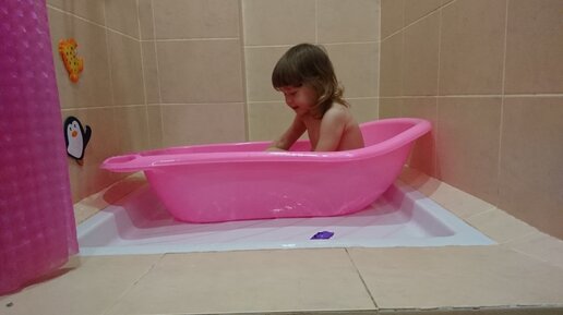 Маленькие детки очень любят плескаться в ванной и моя дочь не исключение. Но в последней съёмной квартире, в которой мы сейчас живём, нет ванны. Там душ - поддон и шторка. Я радовалась душу, для человека, который не любит сидеть в ванной душевая кабина гораздо удобнее. А вот ребёнку уже не так интересно мыться под душем. Вспоминаю себя маленькой, лет до 7 я очень любила плескаться в ванной, погружаться под воду с головой, нахлобучивать пену на голову, играть с игрушками в воде. Решение подсказали предыдущие съемщики...