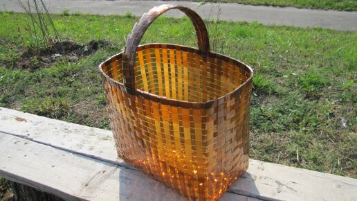 Кто бы мог подумать, что пластиковые бутылки могут стать дефицитом. Но стоило только начать что-то делать из них, и все запасы дома испарились мгновенно. Обычных полторашек даже на такую сумку уходит около трёх десятков, ведь из всей бутылки годится только небольшой участок без рельефа: из фигурного пластика ровные ленты не нарежешь. А мне внезапно захотелось сделать большую, вместительную корзину. И тут я вспомнила про пластиковые кеги из-под пенного напитка, которые прошлым летом таскали дачники из магазина в соседнем дворе...