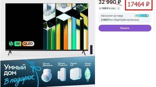 Добрый день, уважаемые читатели, в данной статье я представляю вам подборку больших скидок на телевизоры с МегаМаркета ! Важно: статья не оплачивается ни одним селлером, исключительно ознакомительного характера, поэтому вы не увидите ссылок на товары. Если вам что-то приглянулось, вы с легкостью сможете найти данный товар или же перейти в Telegram канал под постом, где будут все ссылки из статей ! Будьте внимательны, предложение действует на момент написания статьи, чтобы не упустить выгоду, подпишитесь на Канал 1...