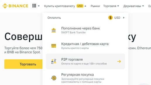 Как купить доллары (USDT) на Binance с рублевой картой