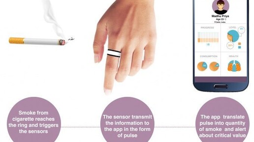 Студенты из Индии придумали кольцо, которое знает сколько табачного дыма попало в ваши лёгкие, собирает всё в статистику и отправляет оповещение, если вы превысили критическую отметку.