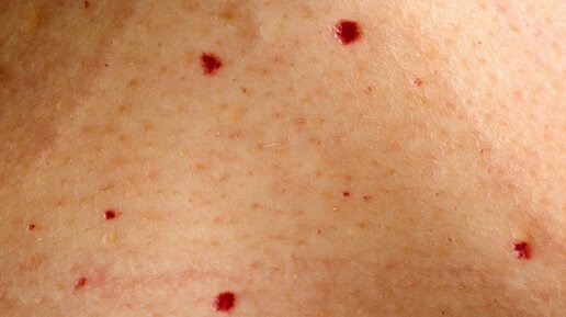 Красные пятнышки, похожие на родинки встречаются на теле у большинства из нас. Это ангиомы, они также известны как вишневые ангиомы или пятна Кэмпбелла де Моргана. Ангиомы могут образовываться где угодно на теле, но обычно появляются на спине, груди и животе. Эти наросты бывают до шести миллиметров шириной, обычно имеют овальную или круглую форму и значительно различаются по цвету, от красноватого, до фиолетового или почти черного. Некоторые находятся на одном уровне с поверхностью кожи, а другие слегка приподняты...