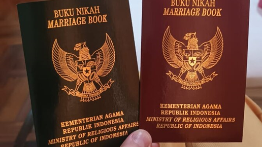 Итак, после нашей свадьбы мы совершили небольшой "тур" по родственникам (жена хотела меня познакомить с семьей и самыми близкими), и далее пришло время заняться оформлением документов. Дело в том, что я хотел забрать жену в Россию, и чтобы наш брак считался законным в обеих странах.  На руки мы получили Buku Nikah - свидетельства о браке. Они действительны на территории Индонезии, но для того, чтобы придать им законную силу за ее границей, требуется сделать его легализацию. Также прочитал о документе под названием апостиль...