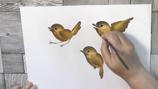 Мы нарисуем несколько вариантов птиц. Каждый вариант займет не более 3-4 минут. Рисовать будем в технике двойного мазка или One Stroke. Подробнее с данной техникой вы можете познакомиться тут. Инструменты и материалы: 1. Нам нужна плоская синтетическая кисть и круглая тонкая кисть для детализации. 2. Возьмите темперные или акриловые краски. 3. Палитра. Подойдет обычная керамическая тарелка или вы можете использовать специальную палитру для акриловых и темперных красок. Как ее сделать, вы узнаете в моей прошлой статье...