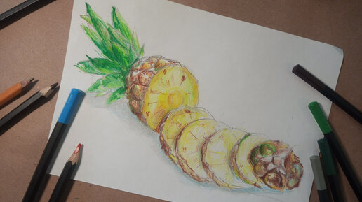 Как рисовать просто? Рисуем ананас цветными карандашами.
