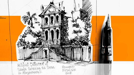 Как нарисовать красивое здание церкви в Риме за 15 минут - ручкой. Подробный видео урок.