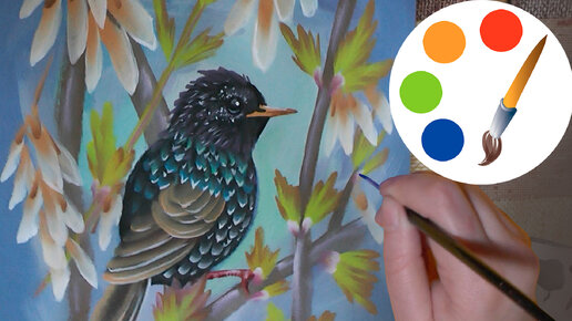 Мастер-класс: Рисуем скворца в технике двойного мазка