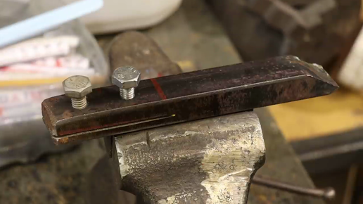 Приветствую всех! Многие пользуются канйелярскими ножами, и зачастую их лезвия ломаются и приходят в негодность. Не спешите выбрасывать сломанные лезвия, так как можно найти им достойное применение. Для самоделки нам понадобится резец для токарного станка. Сделаем разметку и просверлим отверстия диаметром 6 и 8 мм. Сначала просверлим отверстия на 4 мм, а затем на 6 и 8 мм. Нарежем резьбу под болт М 8. При помощи болгарки сделаем прорезь, смещенную к одной стенке. После реза болгаркой обязательно нужно прогнать резьбу...
