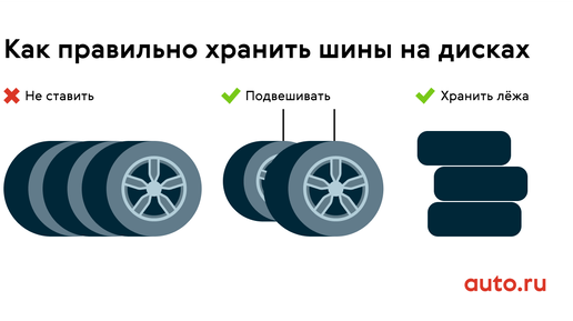Разбираемся, как правильно хранить шины. Зачем подвешивать шины на крюк, можно ли оставлять их на балконе, где точно нельзя складировать колеса и другие важные правила хранение резины Два раза в год автомобилисты в России меняют шины на автомобилях. Чаще всего машины «переобувают» на зимнюю резину в конце октября, когда максимальная дневная температура не превышает пяти градусов по Цельсию и держится на такой отметке не менее недели. При такой погоде ночные температуры стабильно уходят в минус, а с утра возможно образование гололеда...