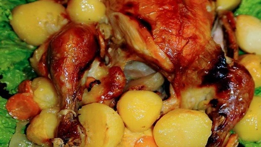 Можно, конечно, просто поперчить и посолить курицу с картофелем и, перемешав, поставить противень в печь. Но блюдо получится сухим и некрасивым. А вот если правильно подобрать дополнительные овощи, соус и специи - ужин удастся на славу! Как эта целая курица в духовке. Вариантов приготовления очень много, но я поделюсь с вами только самыми вкусными и практичными. Ведь такие рецепты всегда приходят на помощь, когда времени на готовку катастрофически не хватает. Мы будем запекать их на противне, в горшочках и пакете...