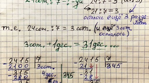 Поделим число в столбик. Деление на однозначное.