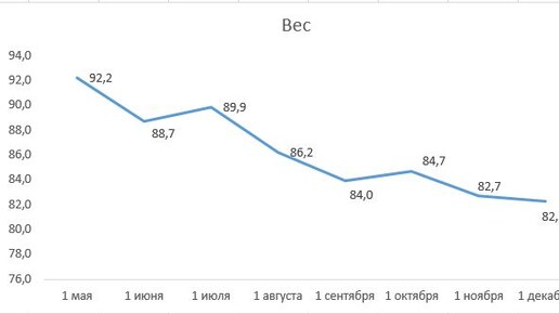 1 декабря, а это значит, что пришла пора смотреть на достижения. Я даже похудела. На 400 гр, но все же! Минимальный вес, который у меня был в ноябре - это 81,7 кг в день рождения с утра перед эклерами. Умные весы показали, что я худею за счет жира и мышц. Насчитал мне биологический возраст 72 года. Не помолодела за ноябрь не смотря на то, что хорошо тягала гриф и гири дома. Обратила внимание на показатель "Основной обмен". Он 1380 кал и не достигнут, а это говорит о замедлении метоболизма. В моем случае он должен быть на уровне 1645 кал...