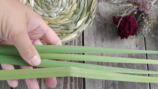 Мое плотное знакомство с рогозом началось этим летом. И мне очень понравилось плести из этого удивительного материала. Самое интересное, что из рогоза можно практически сплести все. На канале есть видео плетения из рогоза вкруг. Для тех, кто предпочитает текстовый формат я решила написать статью с подробными фото процесса. Начнем с отбора материала. Понадобится 4 листа рогоза для основания и более длинные листики для плетения вкруг. Листики основания лучше выбрать пошире. Если листики подсохшие, перед плетением смочите их и оставьте минут на 10...