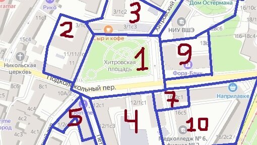 В этой статье – простая карта-схема знаменитой московской трущобы. С помощью этого путеводителя вы сможете узнать, где находились все описанные Гиляровским «локации». Кроме того я покажу, как эти дома выглядят сегодня… те, что сохранились. Внимание, показываю! Номер 1 Под номером 1 – сама Хитровская площадь. В 1930-х на ее месте построили школу, но через 70 лет здание снесли, и площадь появилась вновь. Номер 2 К западу от площади – дом Ярошенко, или дом Степанова с трактиром «Каторга», сохранился (номер 2 на карте), Подкопаевский переулок № 11/11 строение 5 (или Подколокольный переулок №11)...