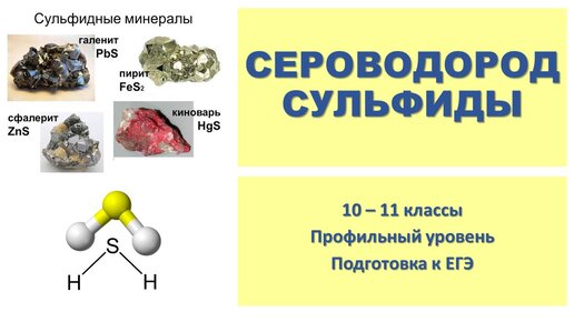 Сероводород. Сульфиды. Подробно разбираются свойства и способы получения сероводорода и сульфидов. Рассматриваются особенности необратимого гидролиза сульфидов, взаимодействие с концентрированными кислотами окислителями...