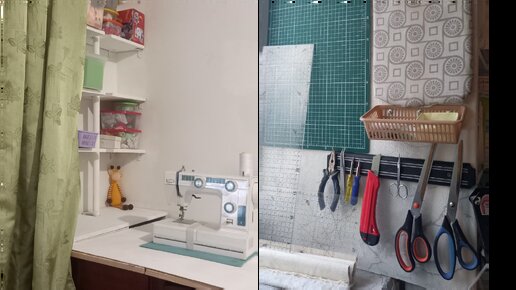 Швейный уголок который помещается за шторой! Сделала своими руками из подручных материалов