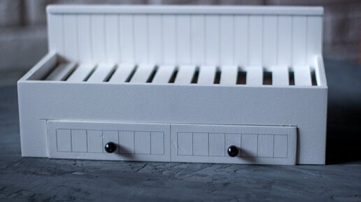 Как я уже писала, детали для мебели вырезаю на лазерном станке. Но прекрасный материал это деревянные линейки, медицинские шпатели и палочки от мороженного. Сейчас я покажу как собирали кровать из деталей, нарисованных мной, а в конце статьи покажу идеи кроватей из палочек и плотного картона...