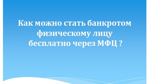 Как можно стать банкротом физическому лицу бесплатно через МФЦ ?