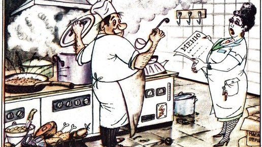 Столовые, кафе и даже рестораны в советское время неоднократно подвергались критике за плохое обслуживание, некачественное и невкусное меню, и особенно за тотальное хищение продуктов на кухне, которое было почти что нормой. Сегодня скажут, что в СССР всегда и везде кормили вкусно, сытно и дешево. Не то, что сейчас. Однако почему тогда появлялись вот такие карикатуры? Художник В. Боковня. Журнал «Крокодил» 1978 №35 Подпись к рисунку: - Прошу вашей руки! Более того, подобные карикатуры публиковались...
