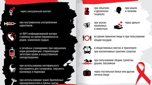 Как можно заразиться СПИДом? Конечно, заражаются не СПИДом (имунодефицитом), а вызывающим его вирусом (ВИЧ). Чтобы заразить человека, ВИЧ должен передаться ему от другого, ранее зараженного человека. Это может произойти при половых контактах. Это самый распространенный и естественный путь передачи ВИЧ. Кроме того, заражение может произойти при проникновении крови, зараженной ВИЧ, во внутренние среды организма незараженного. Это происходит при переливании крови от зараженного ВИЧ донора, при уколах, которые делают иглами и шприцами, на которых осталась зараженная ВИЧ кровь...