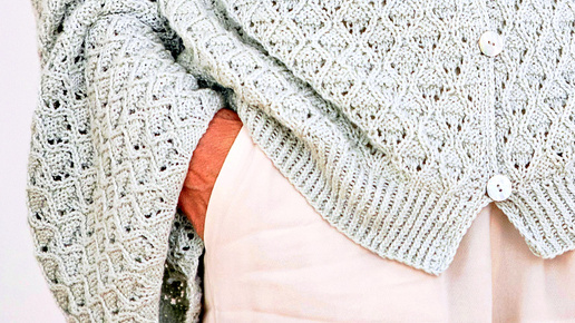 Пять вязаных кардиганов с ажурными и структурными узорами спицами
