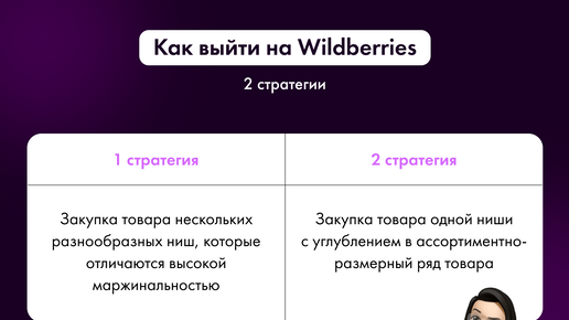 Хотите начать работать с Wildberries и не знаете с чего начать? Тогда эта статья для вас. В начале работы я рекомендую выбрать одну из двух стратегий. Давайте рассмотрим обе с предполагаемым капиталом в 100.000 ₽. Первая стратегия это сделать закупку товара нескольких разнообразных ниш, вторая — выбрать одну нишу и уже внутри нее закупить товар с широким размерным и ассортиментным рядом. Ниже рассказываю подробнее. 1 стратегия Здесь нужно начинать с тестирования ниши. Для этого рекомендую брать от 3 до 5 групп товаров...