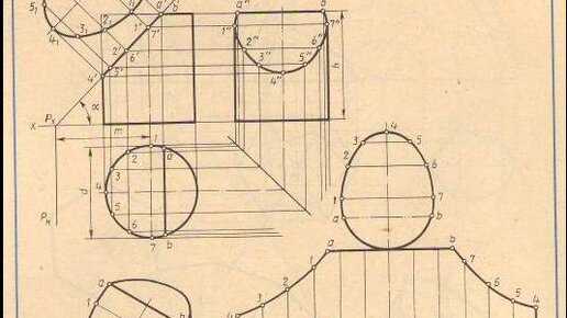 Задание 54. Аксонометрия ЛИНИИ ПЕРЕСЕЧЕНИЯ цилиндра и призмы трехгранной Часть 2