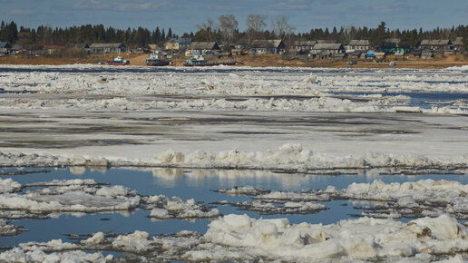 Съездил посмотреть ледоход на Северной Двине, в этот год он сильно удивил. Показываю