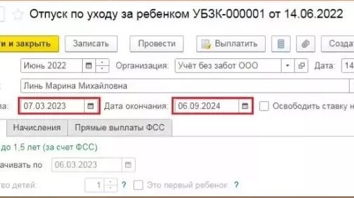 Как в 1С продлить декретный отпуск
