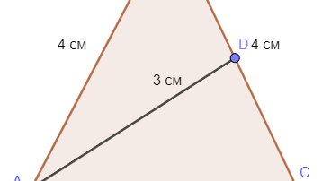 Дан равнобедренный треугольник АВС с боковой стороной, равной 4 см (АВ=ВС=4 см). Необходимо найти основание треугольника (АС), если его медиана, проведенная к боковой стороне, равна 3 см (AD=3 см). Первый способ решения этой задачи (с помощью теоремы Пифагора) рассмотрен в предыдущей статье>> 2 способ - используем теорему косинусов В этом случае никаких дополнительных построений делать не нужно. Рассмотрим треугольник ABD. Так как АD - медиана, то BD = DC = 2 см. Таким образом, в треугольнике ABD известны все три стороны и по теореме косинусов можно найти косинус угла ABD...