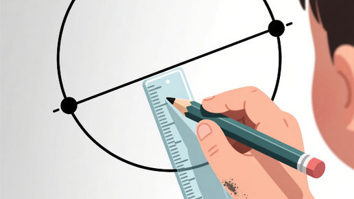 «Мама, а где тут центр?» — ваш ребенок водит циркулем над окружностью, пытаясь угадать? Больше не нужно! Этот метод геометры используют уже тысячи лет, и он работает безошибочно. Сегодня мы раскроем этот секрет, и ваш ребенок сможет находить центр любой окружности быстрее, чем вы найдете циркуль в ящике стола! Хорда — это отрезок, соединяющий две точки на окружности. Любой! Это наш первый след на "месте преступления". Теперь нам понадобится угольник! Мы найдем линию, которая делит нашу хорду пополам и стоит к ней под прямым углом...