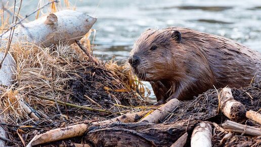 Большая стройка: на реке в Тверской области бобры построили мощную хатку