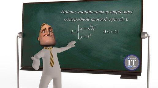 Здорова, ребятки! Давно у нас не было разборов задач из математического анализа. Сегодня в чат физиков был задан интересный вопрос про нахождение центра масс кривой. Поэтому сегодня мы с вами разберем классическую задачу уровня 1-го курса физико-матетических факультетов. Условие задачи на доске. Прочитайте и попробуйте решить самостоятельно. А если не получится, то разбор будет ниже в статье... А пока попрошу подписаться на мой канал в telegram IT mentor . Краткие заметки и наблюдения по физике,...