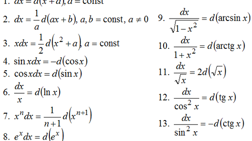 На прошлой практике мы уже рассмотрели как решать простейшие интегралы методом подведения под знак дифференциала. Если вы ещё не знакомы с этой темой, лучше сделайте это прямо сейчас. Ну а пока "неопытные" разбираются с основами, мы начнём разбирать более "навороченные" примерчики. Сейчас наверно подумали о табличке... Постарайтесь её запомнить хотя бы визуально, таким образом в дальнейшем вы сможете на автомате "прикидывать" алгоритм решения того или иного интеграла. Первый гость в нашей "студии" заслуживает статус "ветерана" в интегральном исчислении...
