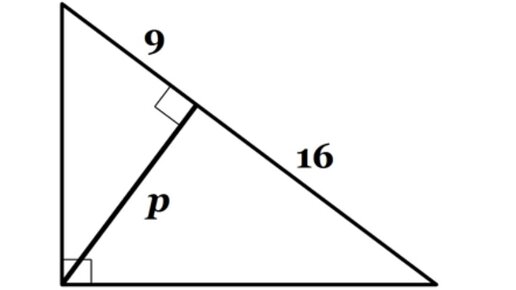 Данная задачка встречалась среди вступительных экзаменов в Массачусетском Технологический Институте больше века тому назад, то есть переносных калькуляторов тогда не использовали. Задачка такова: Из прямого угла треугольника проведена перпендикуляр на гипотенузу (см. рис.). Нужно определить длину этого перпендикуляра p, а также длину катетов...