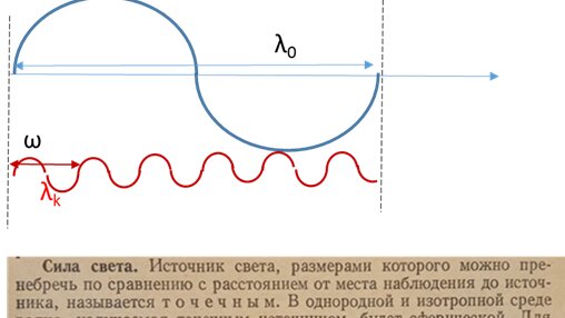 К тому, что у света две частоты все давно привыкли, и даже не пытаются как-то совмещать в голове каким образом между двумя фазами еще шесть фаз частят, особенно в «волновом векторе». Просто, в одном параграфе учебника используется одна частота (V=c/λ ), а в другом другая (ω=V2π). Да и волны света разные в разных параграфах: то плоская синусоидальная, то сферическая. Вот от точечного источника, например, волна сферическая ну, и частота циклическая вполне логична. А вот на счет длинны волны как-то умалчивают, а ведь их тоже две: обычная и циклическая...