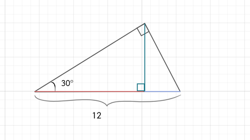 4. ★☆☆ Угол прямоугольного треугольника равен 30°, а его гипотенуза равна 12. Найдите отрезки, на которые высота этого треугольника разбивает гипотенузу