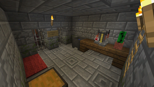 Гуляя по миру майнкрафта вы могли встретить снежную постройку именуемую иглу. Внутри Иглу находится комната в которой находится красная кровать,верстак,красный факел,печка и белый ковер. Но мало кто знает, что с 50% шансом иглу может заспавнится с каменнокирпичным подвалом.Туда ведёт люк с лестницей, расположенный под ковром. Спустившись по лестнице мы попадем в подвал где можно найти сундук с сокровищами, котёл, варочную стойку с зельем слабости, 2 красных ковра, 2 еловые ступени и еловые плиты, а также жителя-священника с зомби-жителем-священником за железными решётками...