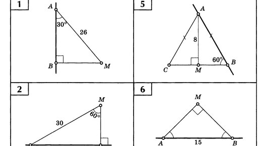 ☝ ОБОЗНАЧЕНИЯ: 📐- треугольник; < - угол. Мы помним, что катеты прямоугольного 📐- это стороны, прилежащие к прямому углу. Гипотенуза- сторона напротив прямого угла. В данных задачах используются признаки прямоугольного 📐: -Катет прямоугольного 📐, лежащий против угла 30градусов, равен половине гипотенузы. И наоборот: -если катет прямоугольного 📐 равен половине гипотенузы, то угол, лежащий против этого катета, равен 30градусов. №1 В данной задаче расстояние от точки М до прямой АВ - это сторона ВМ...