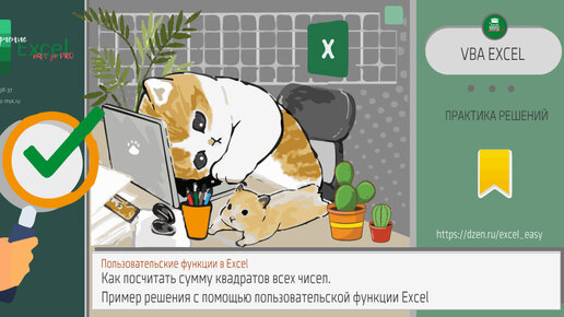 📌 Как посчитать сумму квадратов всех чисел. Пример решения с помощью пользовательской функции Excel