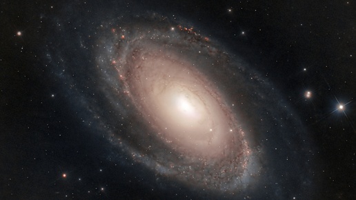 M 81 - классическая спиральная галактика с хорошо развитыми рукавами, расположенная в созвездии Большая Медведица. Она является гравитационным доминантом в группе галактик M81, куда также входят знаменитая M 82 и несколько других галактик (самая заметная NGC 3077). Сам я наблюдал эту галактику немалое число раз, обычно в бинокли с диаметром объективов в 50-70 мм. У галактики хорошо видны 2 доминирующих спиральных рукава. Они выглядят очень чёткими и упорядоченными, что указывает на влияние волн...