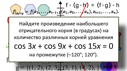 на промежутке (–120°; 120°). Задача централизованного тестирования 2021 года. Вариант 6. Задача В7. РЕШЕНИЕ Применим формулу Применим к сумме cos 3x...