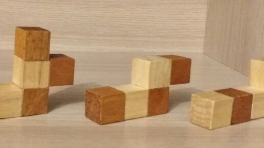 Найдите объемы фигур, составленных из одинаковых кубиков, изображенных на фотографиях, если измерения одного кубика составляют 2 см.