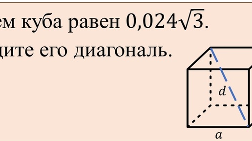 Задача на нахождение значения диагонали куба по известному объему