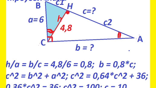 Вот одна из задач, решение которой как-то озадачила и учащихся, и родителей, которые им часто помогают. Вот текст первой задачи. Задача. В прямоугольном треугольнике АВС даны катет а = 6, и высота на гипотенузу h = 4,8...
