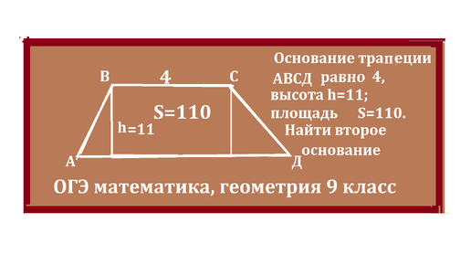 ОГЭ. Математика 9 класс. Найти основание трапеции по заданной высоте, площади и второму основанию