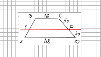 Здравствуйте, дорогие читатели, подписчики и гости канала. Рассмотрим решение задачи, которая в прошлом году числилась под номером 23, т.е. считалась не сложной из второй части ОГЭ. В этом году эта задача стоит на последнем номере 25, т.е. разработчики решили, что она стала сложней. Вот ее текст: Прямая, параллельная основаниям трапеции ABCD, пересекает её боковые стороны AB и CD в точках E и F соответственно. Найдите длину отрезка EF, если AD=48, BC=16, CF:DF=5:3. Решение: Первый способ: 1) В трапеции проведем диагональ АС...