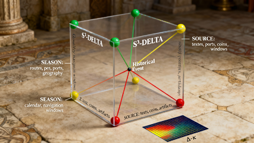 Мы развиваем новый подход к исторической хронологии — метод S³-DELTA, который вошёл в состав более крупной системы S³-STACK. Эта система превращает простое сопоставление дат в комплексную проверку гипотез по трём независимым осям: источники, пространство, сезоны. Но прежде чем говорить о новом, нужно понять, что умел делать старый метод ΔPATH-Graph в составе прежней версии S³-DELTA и почему его возможностей оказалось недостаточно для честной, воспроизводимой истории. В начале была одна задача: сопоставить события из разных летописей, которые написаны в разное время и описывают разные даты...
