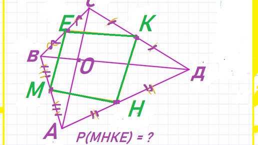 Задача №636 ЕГЭ: диагонали равны 7 и 10. Найти периметр 4-угольника