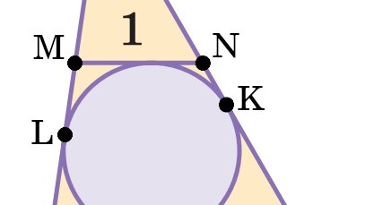Задача: Периметр треугольника ABC равен 9. В треугольник вписана окружность, и к ней проведена касательная, параллельная стороне AB. Отрезок этой касательной, заключённый между сторонами AC и CB, равен 1. Найдите сторону AB. ©Математическая Вертикаль. Учебное пособие для общеобразовательных организаций. Автор: М.А.Волчкевич. Решение: По теореме об отрезках касательных AL + BK = AB; ML + NK = MN = 1. Тогда периметр треугольника P△MCN = P△ACB - AB - (AL + AK) = 9 - 2AB...